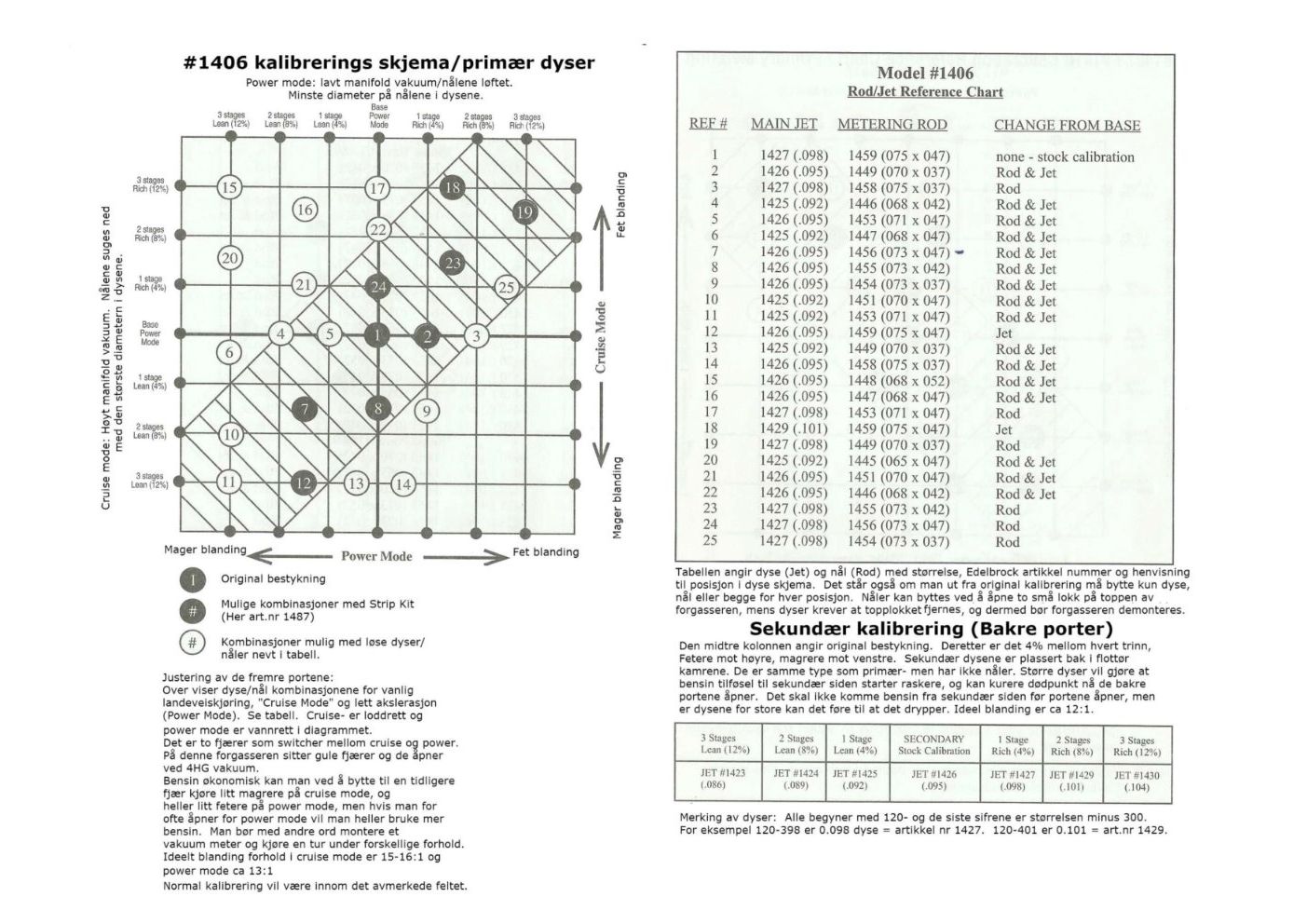 Kalibreringsskjema Edelbrock, på Norsk