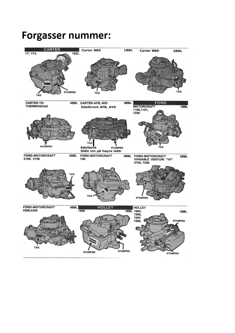 Finne riktig nummer på forgasser